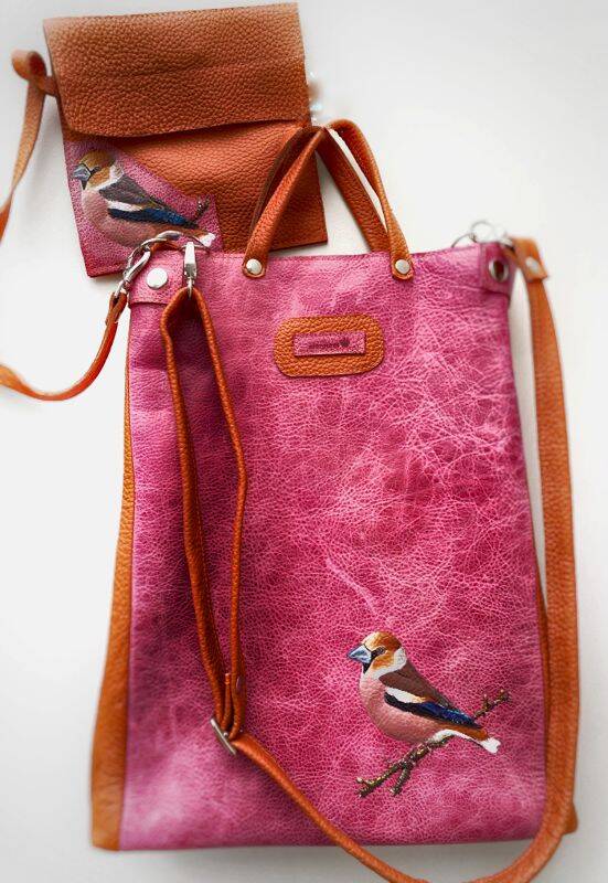Ik kreeg een heel leuke opdracht van MD-tassen: ik mocht een lederen tas beschilderen. De appelvink past helemaal bij deze prachtige tas. Klik op: MD tassen voor meer informatie.